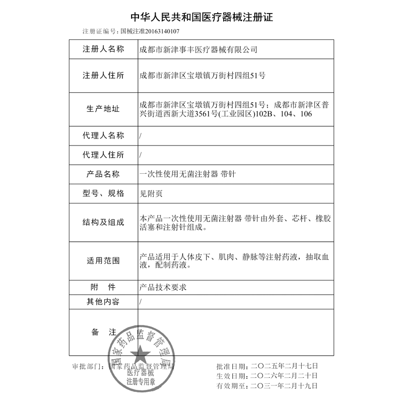 | 生产厂商 | 成都市新津事丰医疗器械有限公司 |